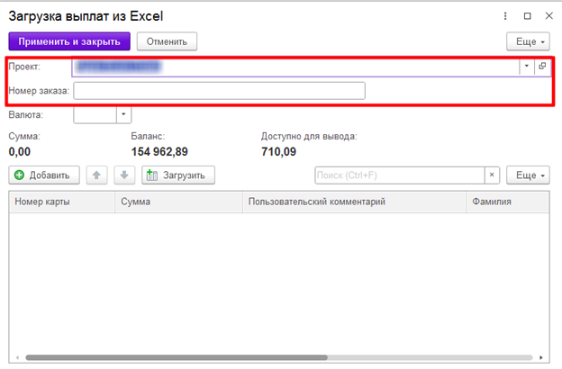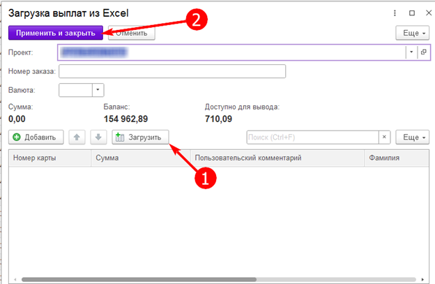 Выбираем проект из доступных и вводим Номер заказа